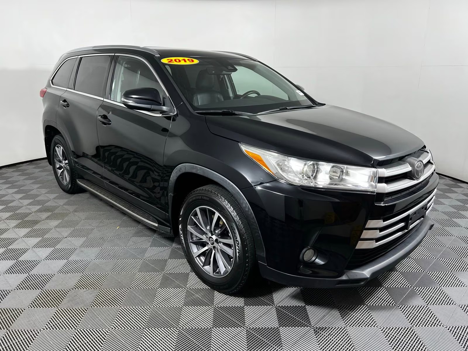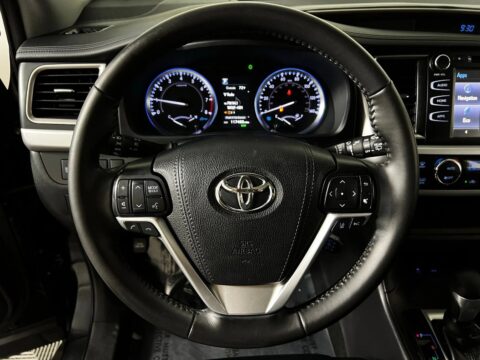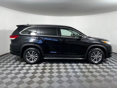 2019 Toyota Highlander XLE Midnight Black Metallic FWD 3.5L V6 8-Speed Automatic Electronic with ECT-i Black w/Leather Seat Trim, 3rd row seats: split-bench, 6 Speakers, AM/FM radio: SiriusXM, Auto-dimming Rear-View mirror, Electronic Stability Control, Exterior Parking Camera Rear, Front Center Armrest, Front dual zone A/C, Front fog lights, Heated Front Bucket Seats, Navigation System, Power moonroof, Rear air conditioning, Rear window defroster, Rear window wiper, Remote keyless entry, Security system, Steering wheel mounted audio controls, Telescoping steering wheel, Tilt steering wheel, Variably intermittent wipers, Wheels: 18 Turbine-Look Alloy.